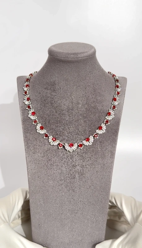 Ювелирное украшение СЕРЬГИ NO NAME OVAL RUBY 25.55 CT & DIAMONDS NECKLACE, MOZAMBIQUE (GIA)